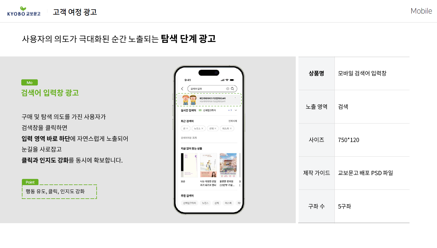 이에 따라 교보문고 광고는 각 행동 단계별 주요 접점에 맞춰 노출 위치와 목적이 구분되어 있습니다.