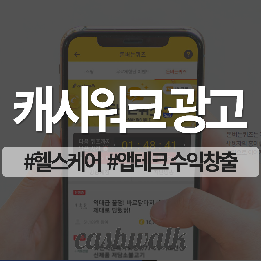 캐시워크 앱 광고는 돈버는퀴즈, 돈버는라방, 스퀘어배너, 돈버는미션 등