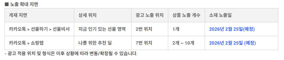 2026년 2월 25일부터 상품 카탈로그 캠페인 노출 지면이 확대됩니다.